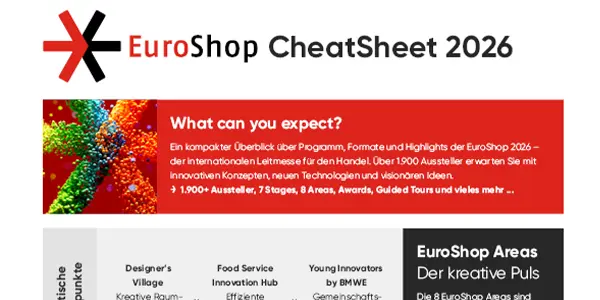 Live von der EuroShop 2026 in Düsseldorf: Wir berichten vom 21. bis 26.02. in Echtzeit auf LinkedIn und Instagram, zeigen Highlights, Insights und Stimmen von der Messe und unserem Messestand. Folgen Sie uns und bleiben Sie nah am Retail-Puls.